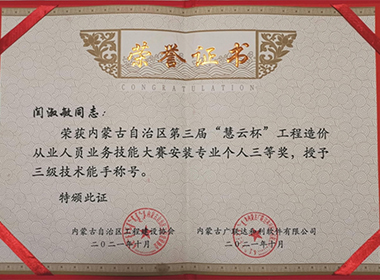 我司闫淑敏获得《开云ty官网中国有限公司自治区第三届“慧云杯”工程造价从业人员业务技能大赛》个…