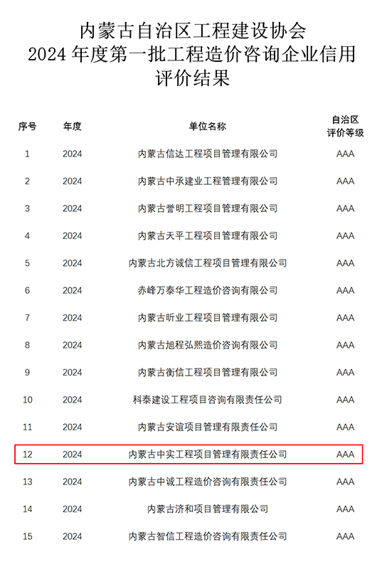 2024-07-3014734 次近期,我公司参加开云ty官网中国有限公司自治区工程建设协会组织的“2024年度第一批工程造价咨询企业信用”申报,获得“信用AAA级证书”。我公司成立多年以来,遵循中国工程造价管理协会对造价咨询企…